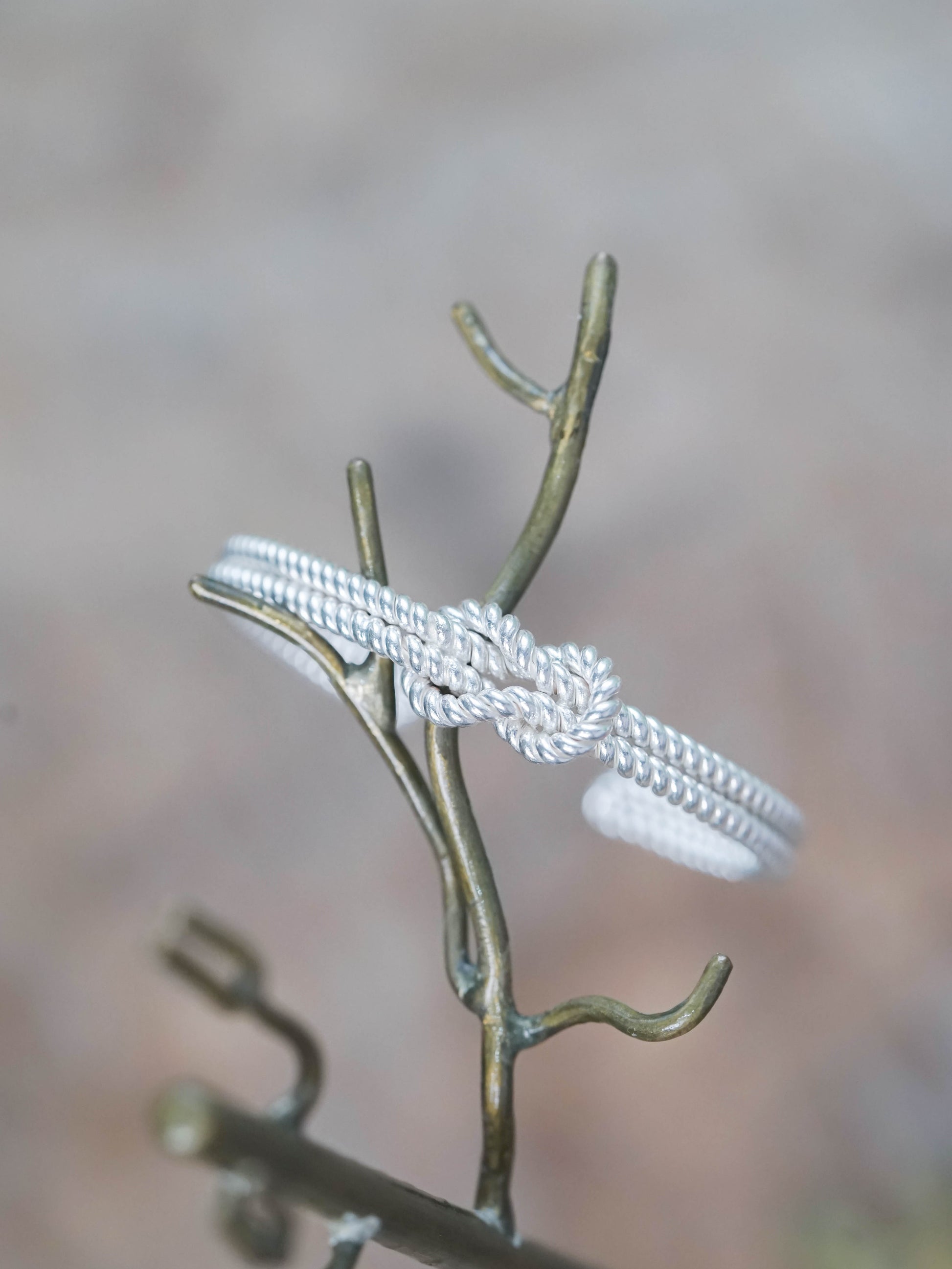 - Rope-texture design with a refined, minimalist knot centerpiece