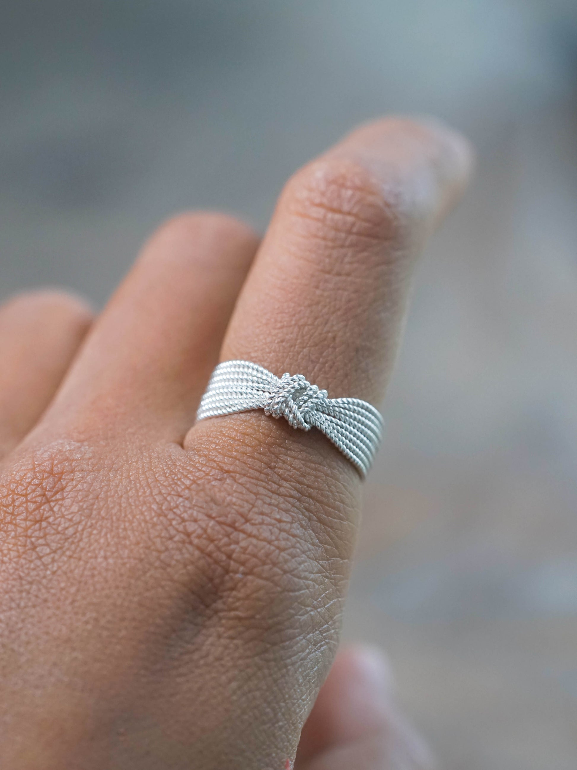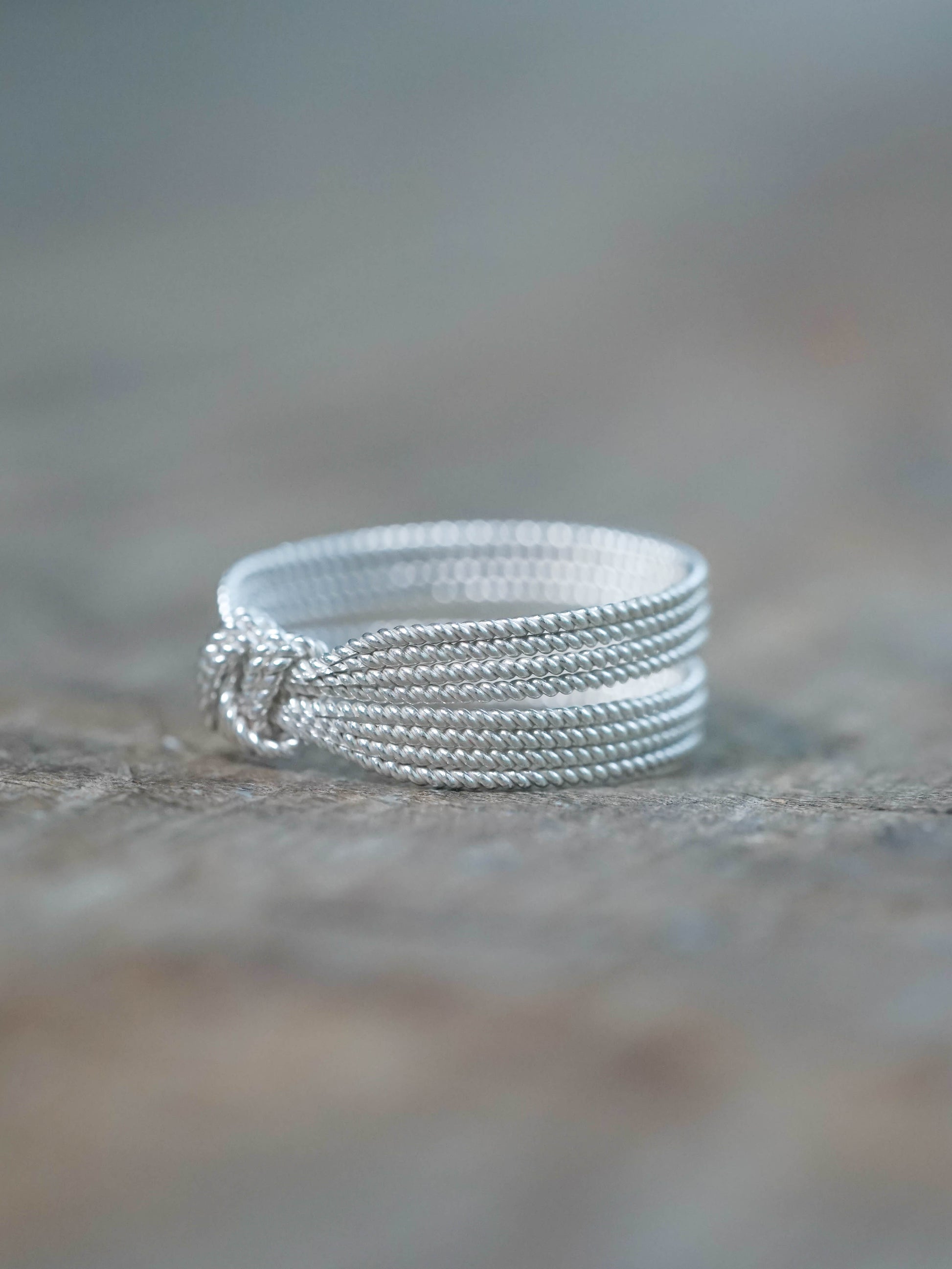 Designed to echo the structure and visual rhythm of rope lines, this 8-band ring layers multiple twisted strands into a clean, architectural profile. The wrapped center detail creates a refined focal point, giving the piece presence while staying minimalist and wearable.